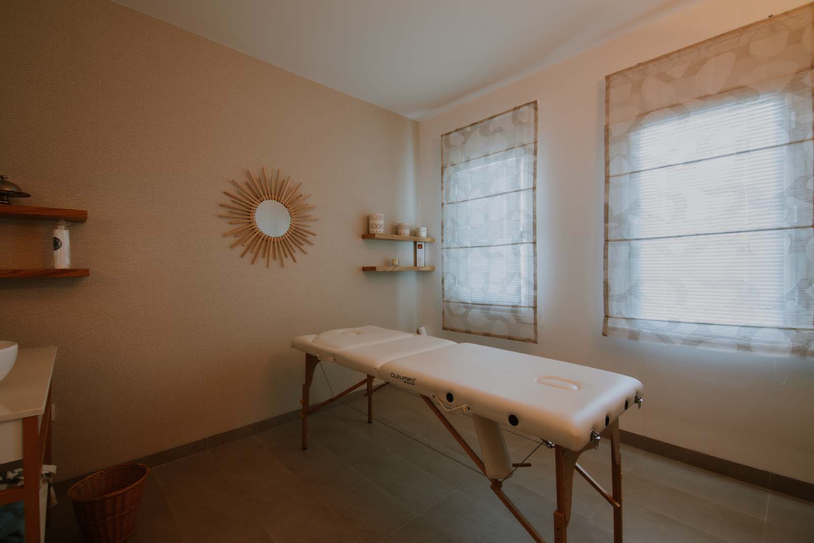 Salle de massage avec masseur et masseuse sur demande.